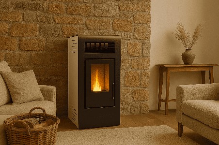 The ALFA 12 pellet stove is a versatile ally for heating your home efficiently and eco-friendly. With 11.16 kW of useful output, it heats up to 240 m³ and does so with optimized consumption thanks to its 87% efficiency. Its refractory stone chamber improves combustion, and its front ventilation distributes heat evenly. It features digital programming, a Ø80 mm flue outlet and an attractive design that fits into any room.